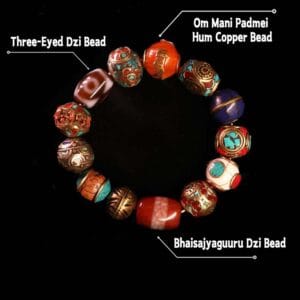 Material: Bhaisajyaguuru Dzi Bead. Three-Eyed Dzi Bead. Om Mani Padmei Hum Bead….